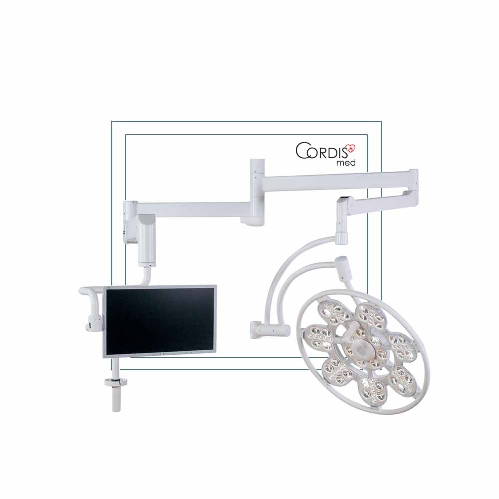 ЭМАЛЕД 500/X — хирургический светильник потолочного типа, обеспечивающий уровень центральной освещённости до 160 клк и оснащённый встроенным источником резервного питания и дополнительной консолью для установки дисплея.